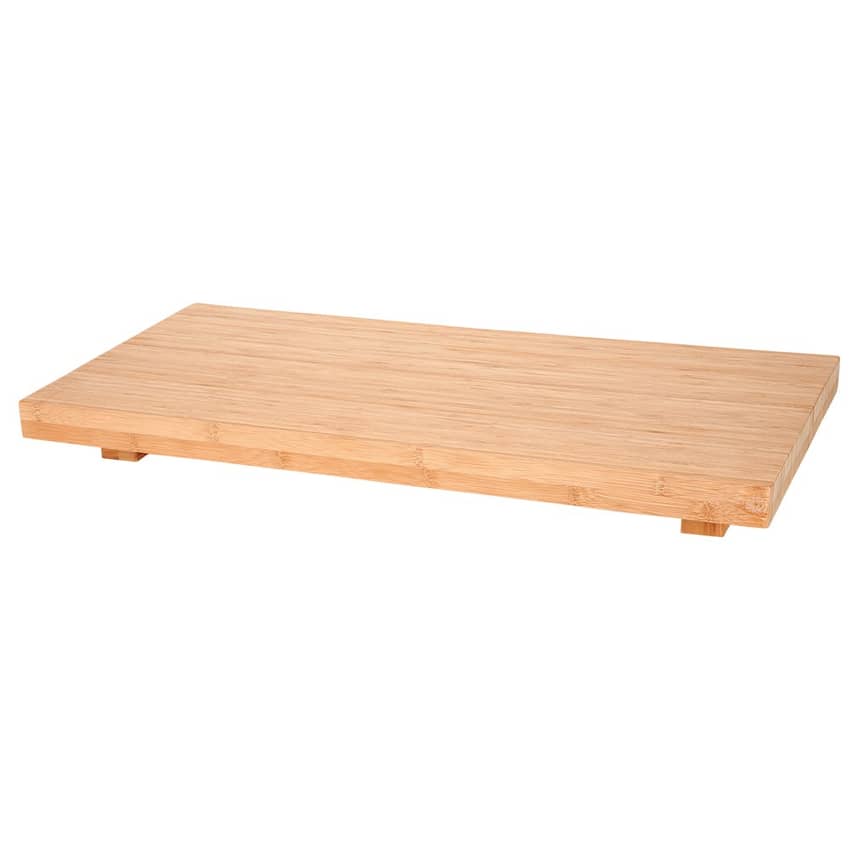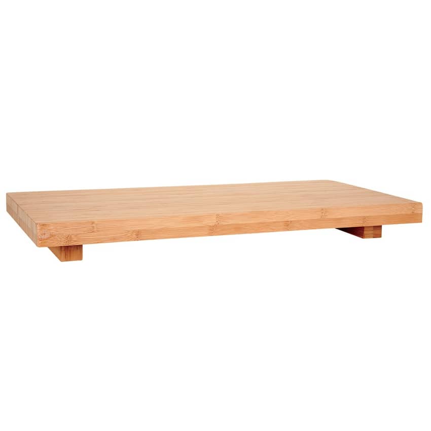 - The impressively large surface area provides a generous amount of display space that will impress your guests and keep them filled, while the natural look makes for a simple yet effective backdrop for your signature offerings. Additionally, the stylish rectangular bamboo legs keep the unit sturdy at all times