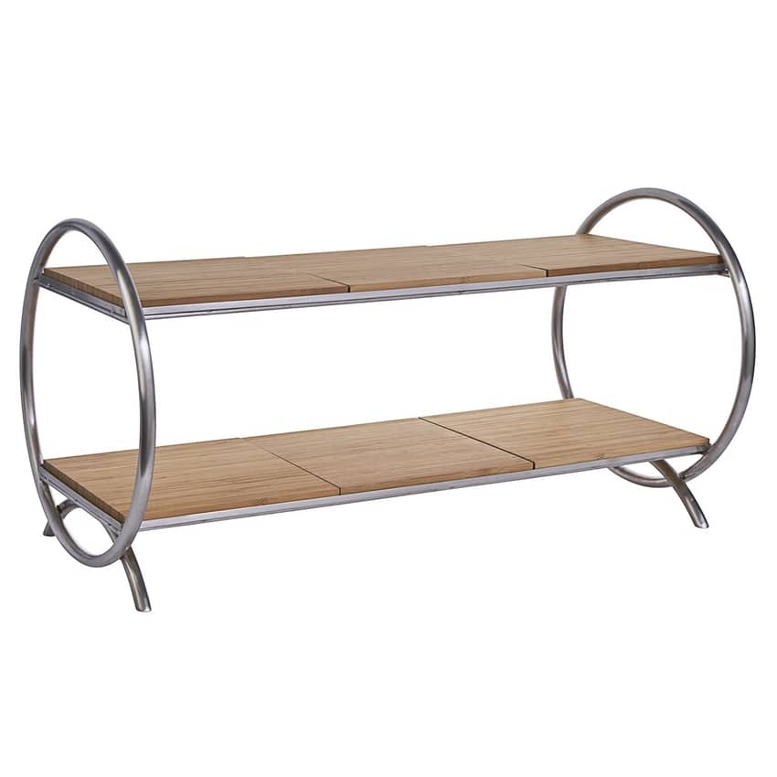 - As an added bonus, this attractive stand includes 6 removable bamboo shelves that contrast nicely with the steel frame, adding a combination of different materials to your displays for variety