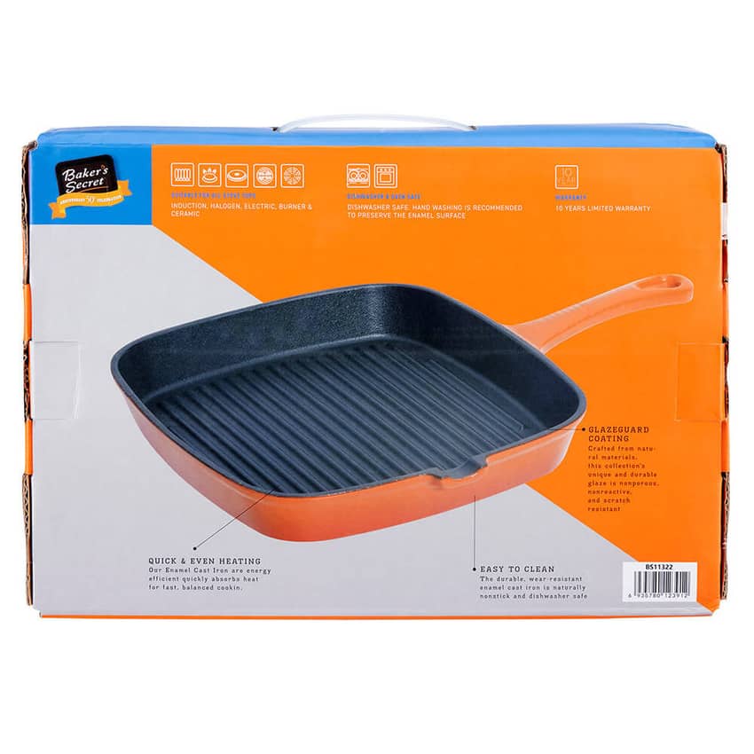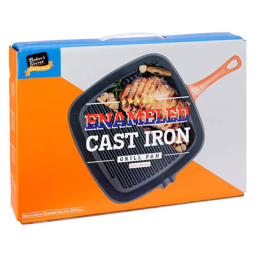 - Baker's Secret 9.4" Enameled Cast Iron Grill Pan