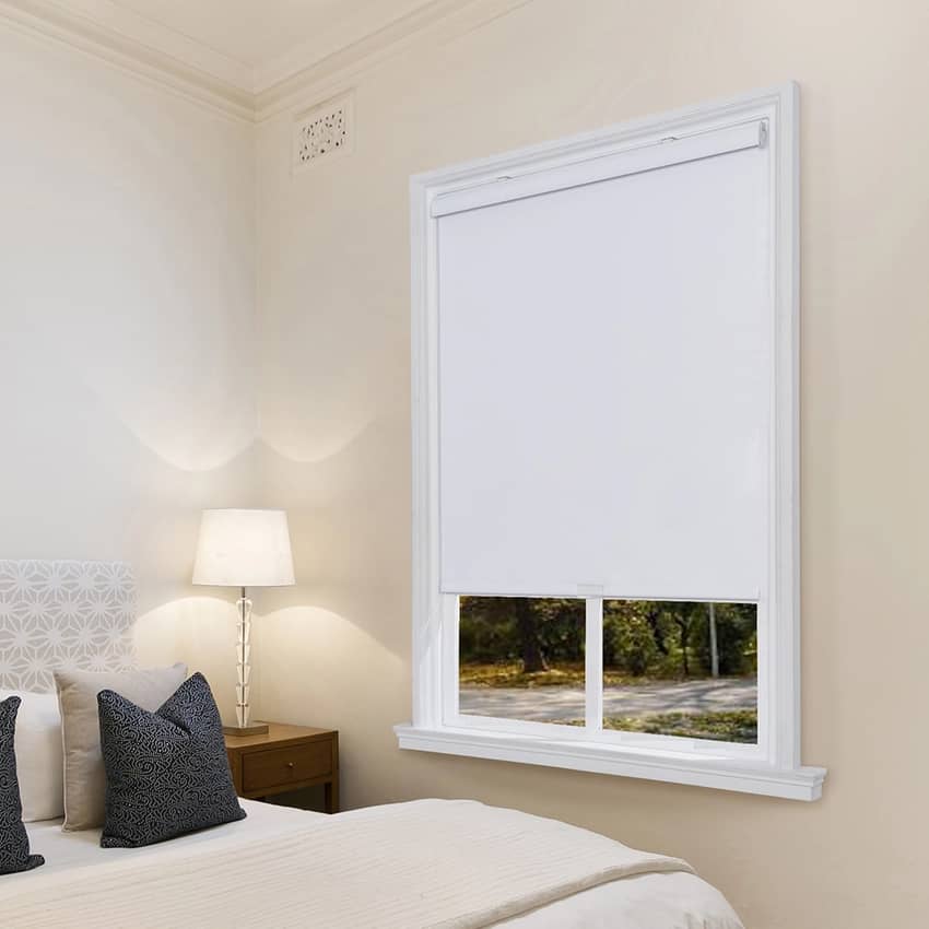 Add a touch of elegant style to your home with the Cordless Faux Silk Fabric Roller Shade in a sleek White color. Crafted from durable polyester faux silk, this shade features a thermal backing that provides light filtering, privacy, and energy-saving benefits. The innovative cordless design allows for smooth and easy operation, simply raise, lower, or tilt the shade by hand, making it a safe and convenient option for households with children or pets. The shade is topped with a color-coordinating cassette valance that includes a matching fabric insert for a clean and cohesive look. Installation is quick and simple with all hardware and a step-by-step instruction manual provided. Easy to clean and maintain, this shade offers a sophisticated and functional window treatment solution. The minimum depth required for an inside mount is 2 inches, and for a flush mount, it is 2 5/6 inches. For an outside mount, it is recommended that 3 inches be added to the width for full coverage. This shade measures 66 inches long and 43 inches wide.