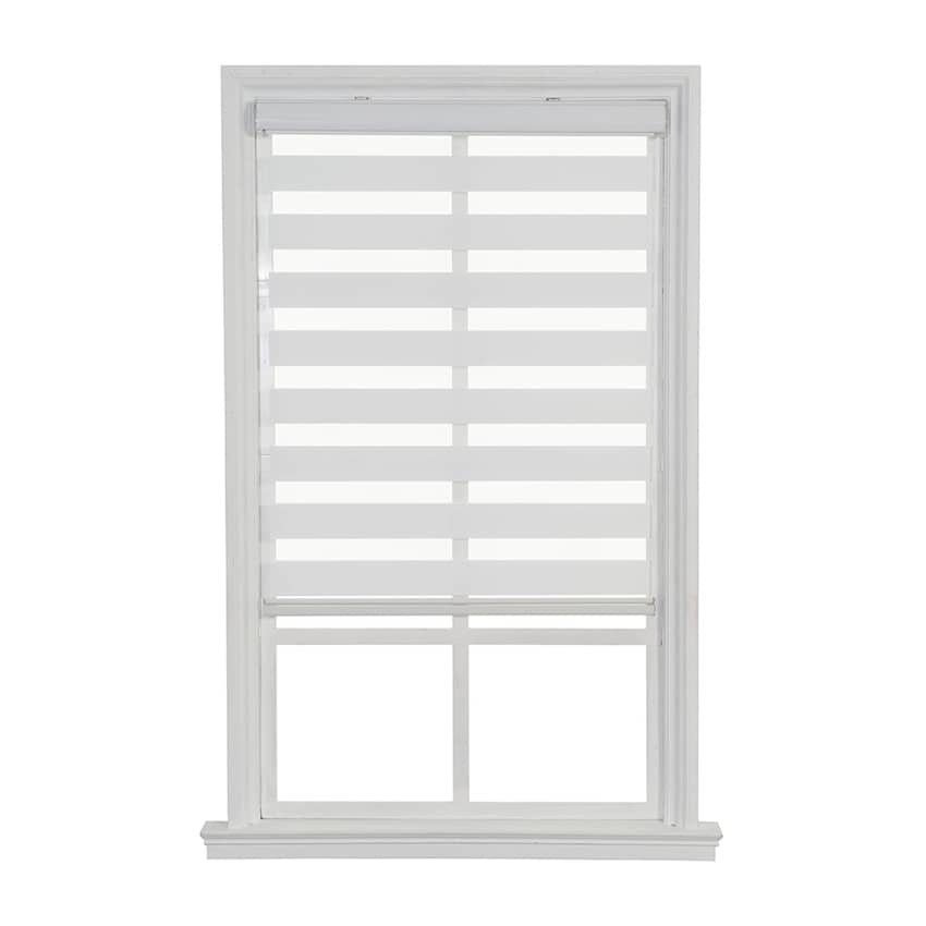 Enhance your windows with the clean and modern look of the Cordless Textured Fabric Push-up Shadow Roller Shade in White. The unique textured fabric creates a natural and inviting aesthetic while the shade's light-filtering properties offer privacy without completely blocking out natural light. Designed with a safe and convenient cordless system, you can easily raise, lower, or adjust the shade by simply pushing or pulling the bottom rail, making it perfect for homes with children or pets. The included color-coordinating cassette valance provides a sleek, finished look, and all the necessary hardware and instructions are included for a hassle-free installation. The minimum depth required for an inside mount is 2 inches, and for a flush mount, it is 2-5/6 inches. This shade measures 66 inches long and 39 inches wide.