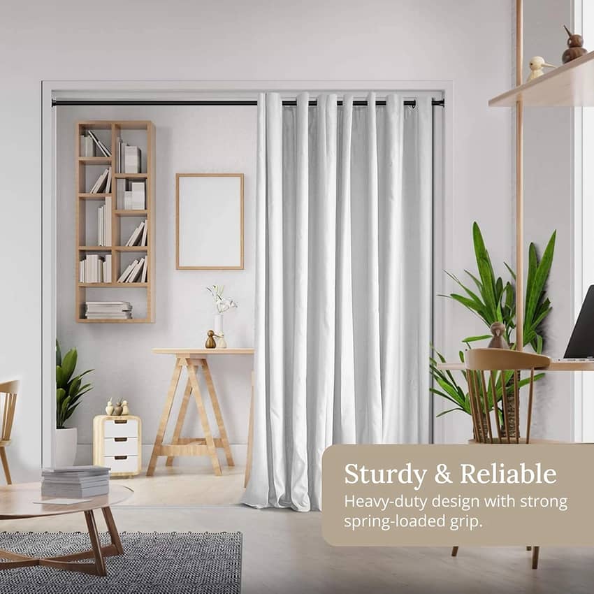 - Strong Hold Construction: Built for daily use with a spring-loaded center and rubber tips; this heavy duty tension curtain rod locks tightly without drilling or wall damage