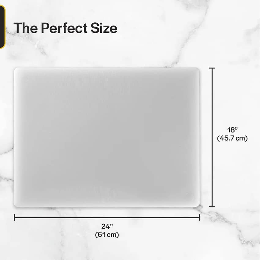 - At 24 x 18 x 1/2", you'll have plenty of space to craft a restaurant-level meal. Board can flex and bend for easier transfer of food from board to bowl, pot, pan, or grill