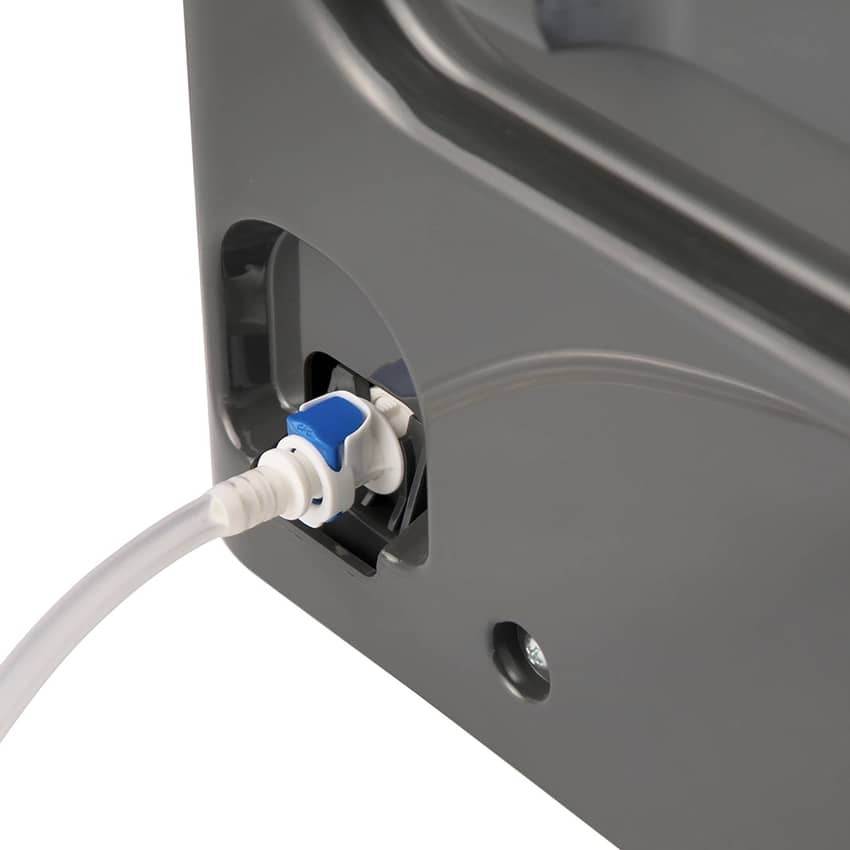 - Built-in pump with included quick-connect drain hose makes it easy to remove water from unit