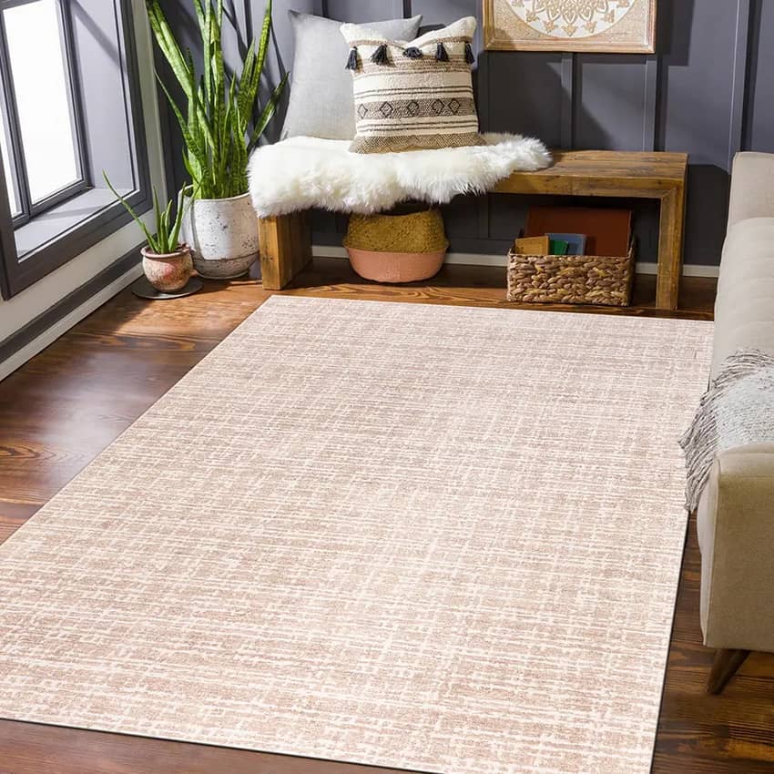 The Hazel Collection Grid Area Rug in Beige and Ivory is a luxurious and durable addition to any home. Its super soft 100% polyester pile provides a plush and comfortable underfoot experience, while the cotton backing adds durability and stability. This rug is non-flammable, fade-resistant, and stain-resistant, ensuring long-lasting beauty. The anti-static properties help to prevent dust and pet hair from accumulating, making it easy to keep clean. Made in Turkey with a pile height of 10 millimeters, the Hazel Collection rug is a stylish and practical choice for any room in your home. This rug measures 9 feet wide, and 12 feet long.