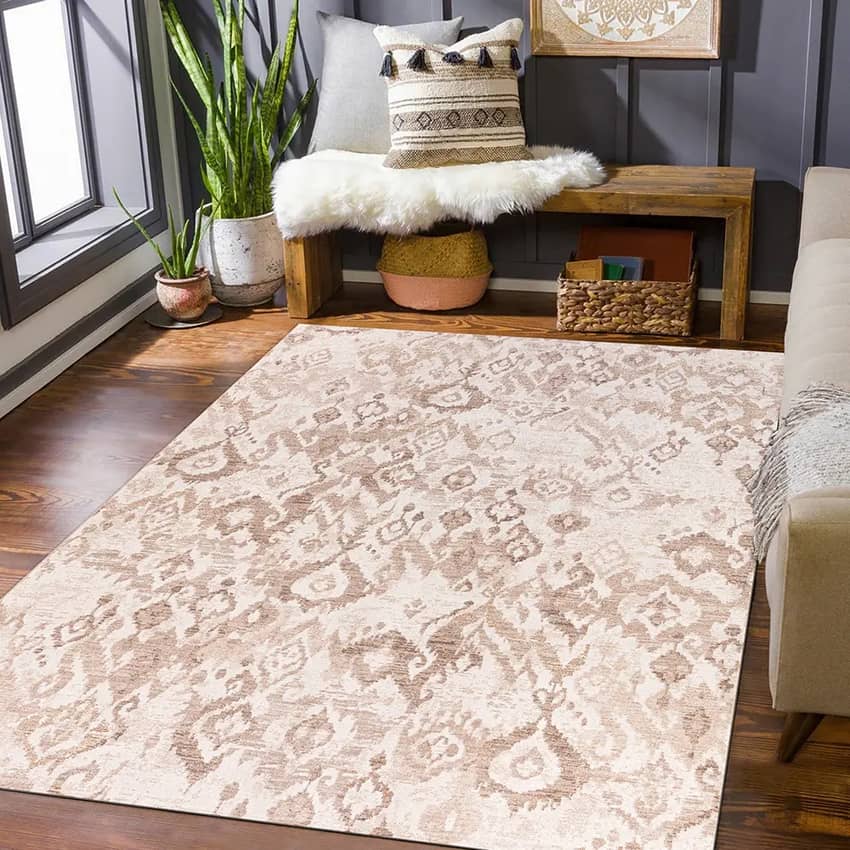 Hazel Collection 9’ x 12’ Ikat Area Rug, Beige & Ivory