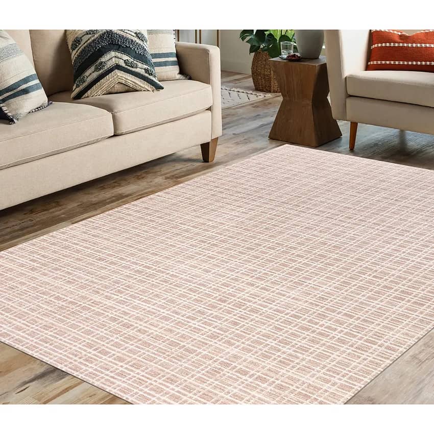 Immerse yourself in timeless elegance with the Hazel Collection Plaid Area Rug. This oversized rug boasts a luxurious 10-millimeter pile crafted from 100% polyester, creating a sumptuously soft feel underfoot. The classic beige and ivory plaid pattern adds a touch of sophistication to your d�cor, while the neutral colorway ensures versatility that complements a variety of styles. This rug is beautiful and built to last, featuring stain-resistant, fade-resistant, and anti-static properties for effortless maintenance. The non-flammable construction provides peace of mind, while the cotton backing ensures the rug stays securely in place. Its large size makes the Hazel Collection Plaid Area Rug a perfect choice for anchoring a larger living space and imbuing it with timeless style and inviting comfort. This rug measures 9 feet wide, and 12 feet long.