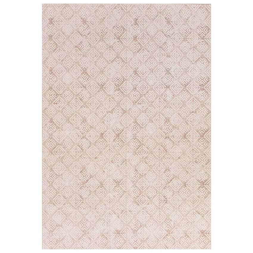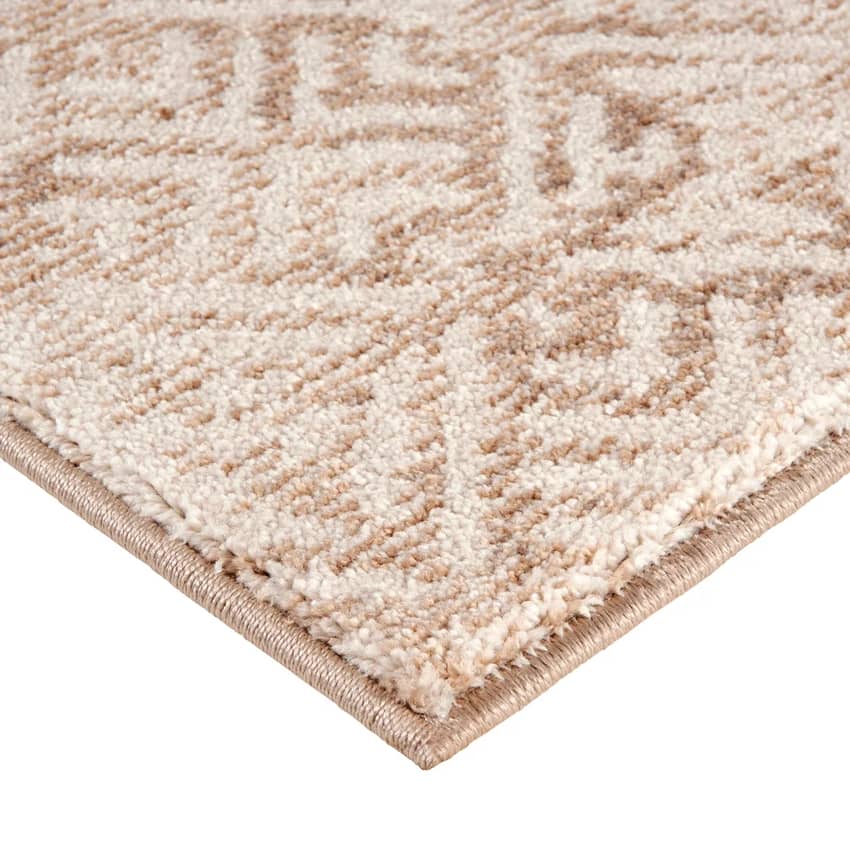 The Hazel Collection Tile Area Rug in Beige, and Ivory is a luxurious and durable addition to any home. Its super soft 100% polyester pile provides a plush and comfortable underfoot experience, while the cotton backing adds durability and stability. This rug is non-flammable, fade-resistant, and stain-resistant, ensuring long-lasting beauty. The anti-static properties help to prevent dust and pet hair from accumulating, making it easy to keep clean. Made in Turkey with a pile height of 10 millimeters, the Hazel Collection rug is a stylish and practical choice for any room in your home. This rug measures 9 feet wide, and 12 feet long.