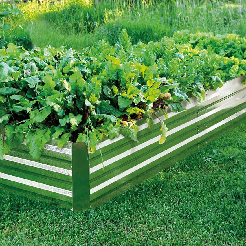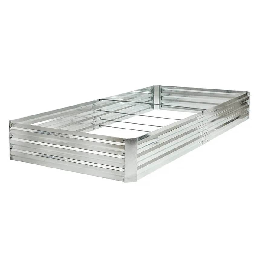 Offered exclusively by Ocean State Job Lot, the Tiller & Rowe Galvanized Raised Garden Bed is a roomy and convenient option for growing plants. Made from galvanized steel, it resists rust to ensure long-lasting use. Safety edges on both the top and bottom prevent accidental cuts, while the easy assembly process allows you to get planting quickly. This 96-inch long bed provides 32 cubic feet of growing space, perfect for herbs, vegetables, or flowers. Once assembled, this raised bed measures 48 inches wide, 12 inches high, and 96 inches long.