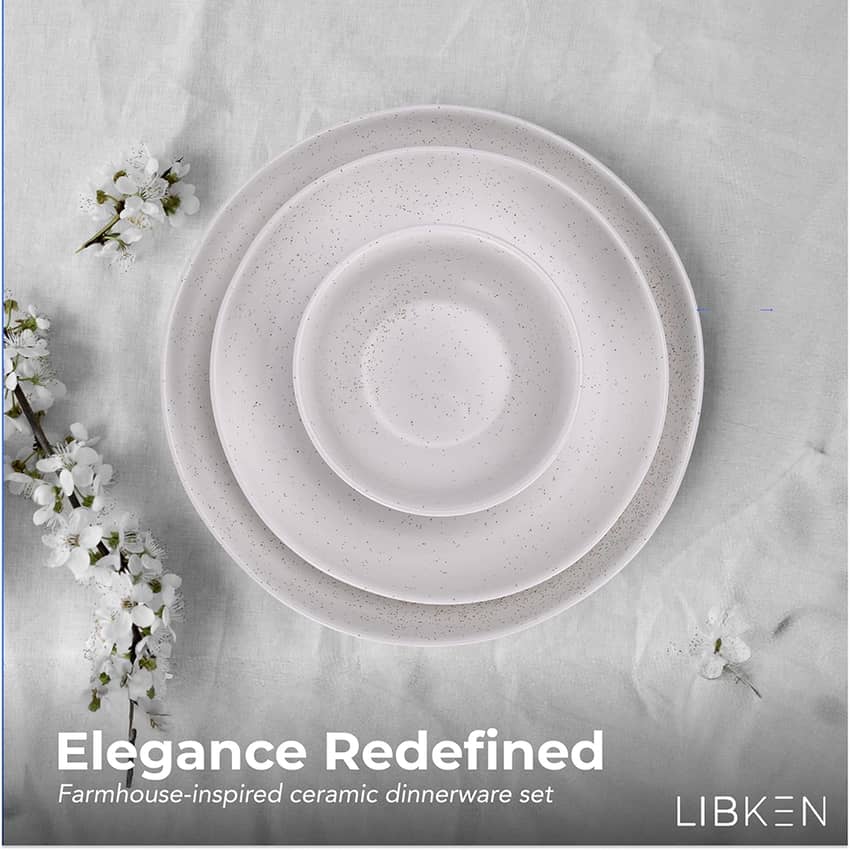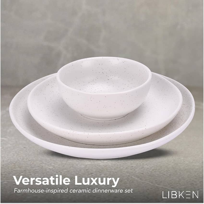 Elevate your dining with the LIBKEN 12-Piece Plates and Bowls Set in White, a perfect blend of style and durability for any occasion. This dinnerware set for 12 features a charming sprinkled ceramic design, adding a touch of rustic elegance to your table. Crafted from robust stoneware, these dishes are built to last, providing a reliable and beautiful alternative to plastic. The farmhouse-inspired design brings cozy warmth to your home. With dinner plates, bowls, and more included, setting your table for a casual family meal or a festive dinner party has never been easier.