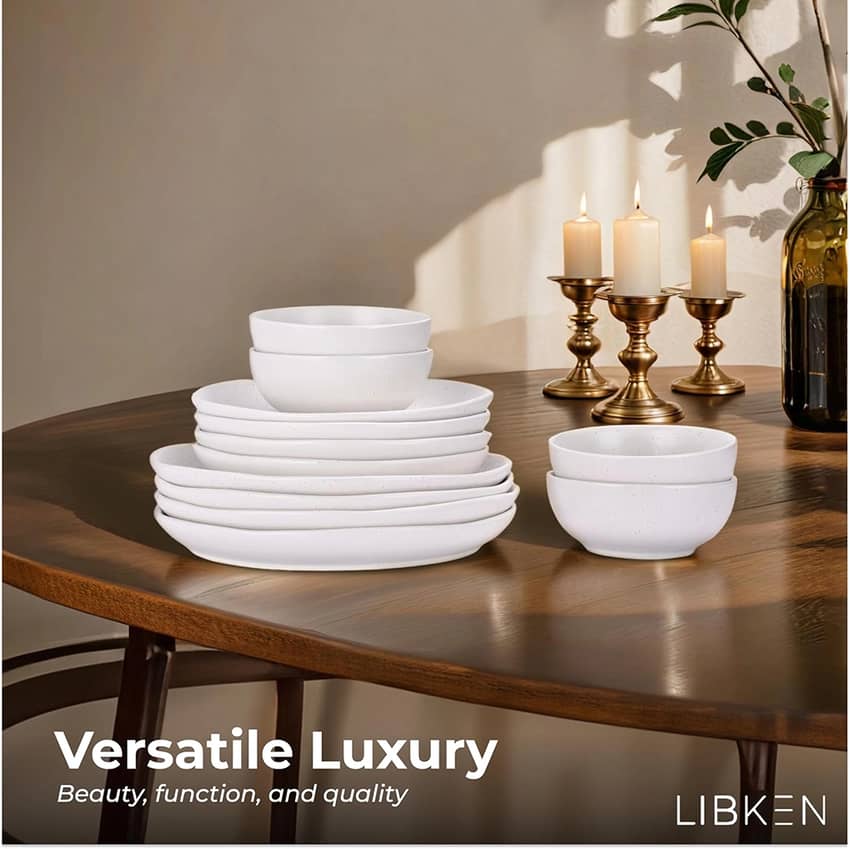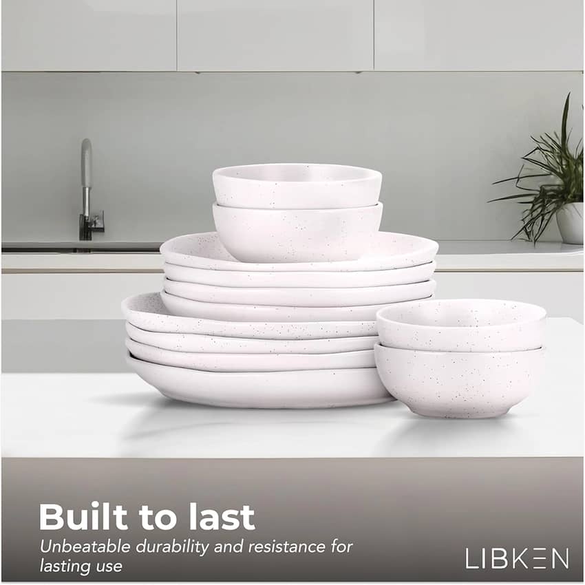 LIBKEN Plates and Bowls Set, White, Set of 12