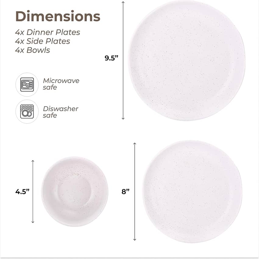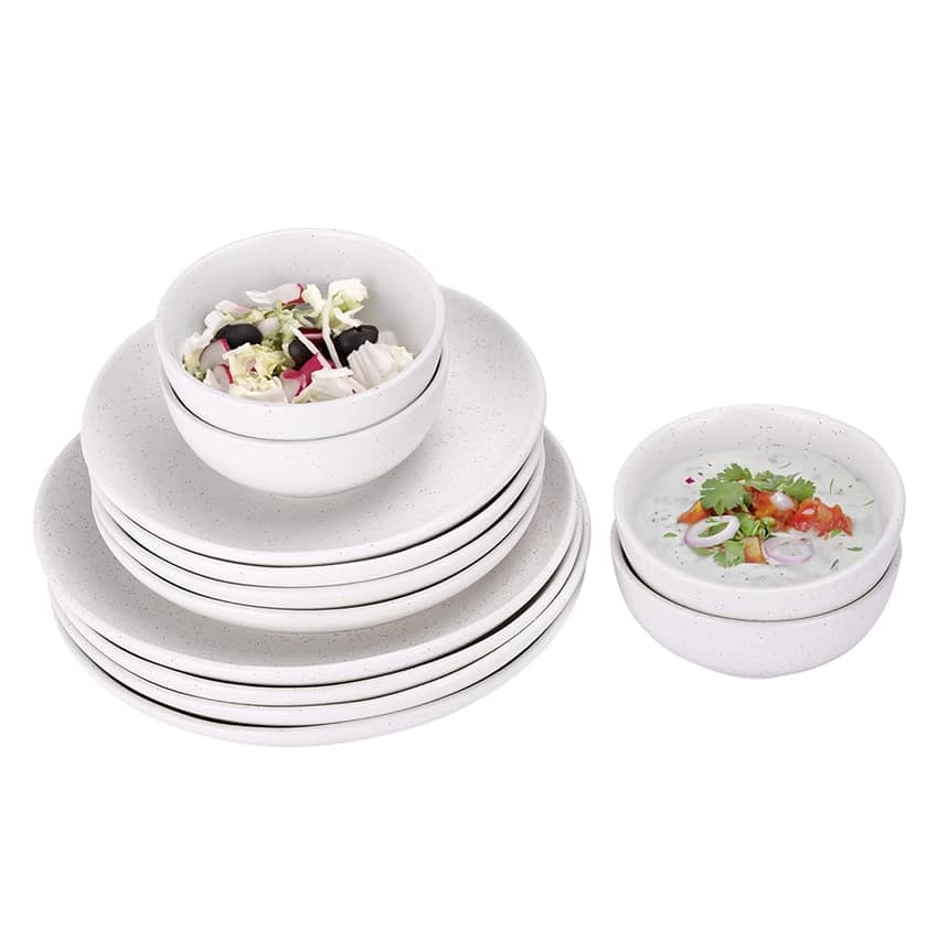 - Enhance your dining experience with our white dishes set, a perfect addition to your dinnerware sets for 12. Our plates and bowls sets white, sprinkled ceramic design, is a perfect addition to your table top dinner decorations for any occasion