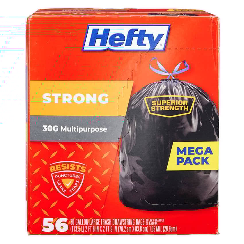 Hefty Strong Multipurpose 30 Gallon Trash Bags, 56 Count