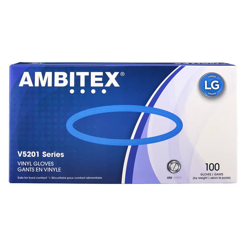 Ambitex Vinyl Gloves Large, 100ct.