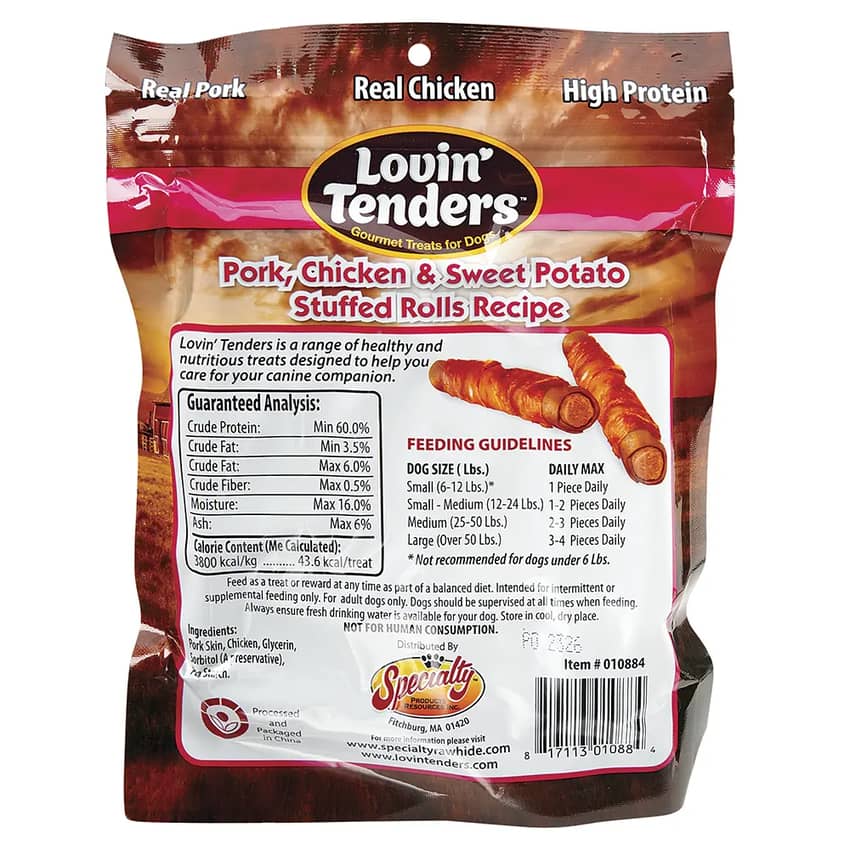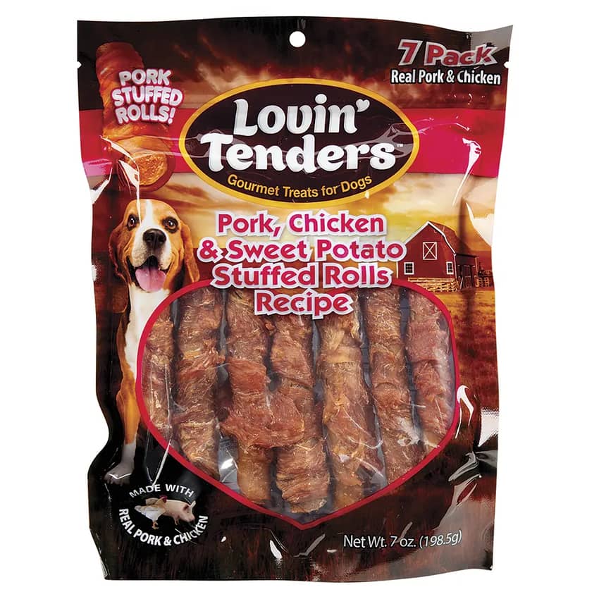 Lovin' Tenders Pork, Chicken & Sweet Potato Stuffed Roll Dog Treats, 7 Count