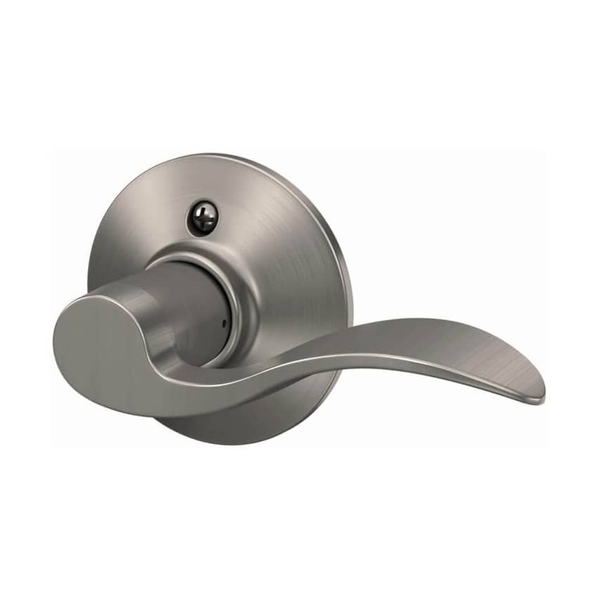 The Schlage Accent right-handed one-sided dummy door lever in aged bronze is a stylish and durable decorative door handle that is perfect for use on doors that do not require latching. It is commonly used as a door pull or for the inactive door in a double-door installation. The lever is constructed from premium metal and features a durable aged bronze finish that will complement any home decor. The Schlage Accent is also easy to install. It is surface-mounted and does not require any boreholes or latches. This lever is designed for right-handed doors, which means that the hinges are located on the right when standing outside the door, and the inside lever points left toward the hinges. It measures 5.6 inches long and 4.6 inches wide.