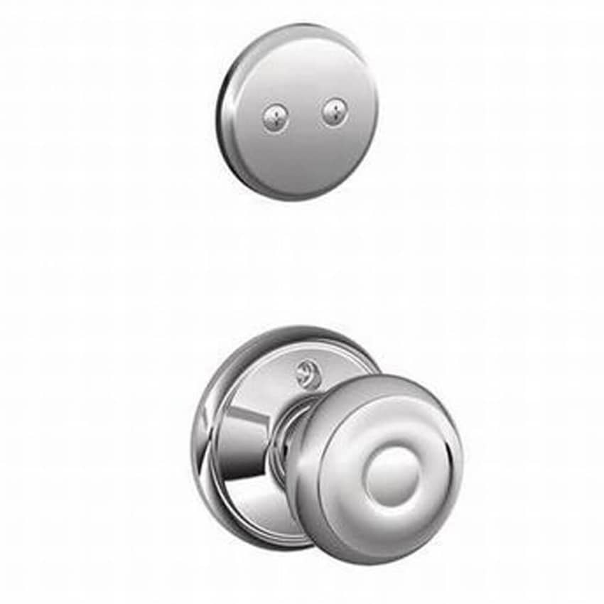 The Schlage Georgian dummy interior pack in bright chrome is constructed from high-quality materials and features a bright chrome finish that will add a touch of elegance to any home. The dummy interior pack includes an inside knob or lever, a blank rose, and mounting screws. It is designed to be paired with a Schlage F93 keyed entry door handle or deadbolt to create a complete entry set. F-Series handsets are five-pin tumblers with two keys per lock. This dummy handle is reversible, so it can be installed on either left-handed or right-handed doors. It is also easy to install and comes with all of the necessary mounting hardware. The Schlage Georgian dummy interior pack in bright chrome is a great choice for homeowners who are looking for a stylish, secure, and easy-to-install interior door handle.
