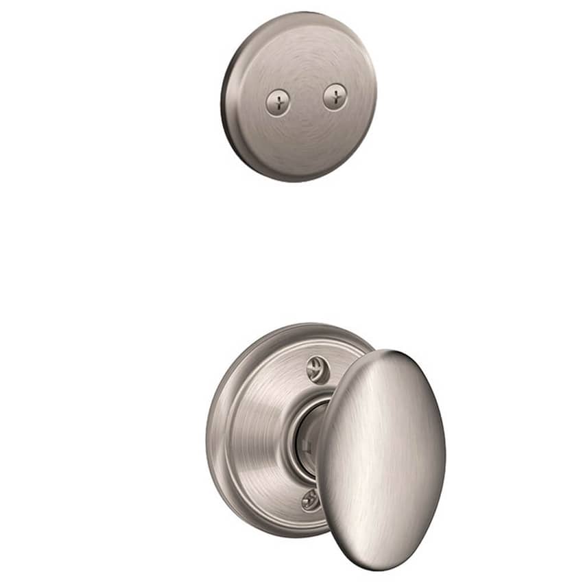 The Schlage Siena dummy interior trim pack in satin nickel is designed to be paired with a Schlage F93 Series dummy cylinder handle set to configure a complete dummy door set. This handle is non-functional and does not turn. The interior pack includes the inside knob and deadbolt cover plate only. It is easy to install and requires only a Phillips screwdriver. The set is designed to fit standard interior doors and most installations should take just a matter of minutes. The Schlage Siena is made from high-quality materials and has a satin nickel finish that goes with any home decor.
