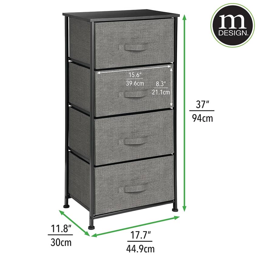 mDesign 4-Drawer Tall Dresser, Charcoal