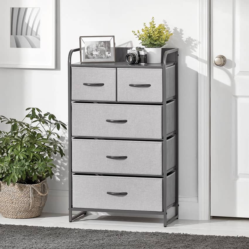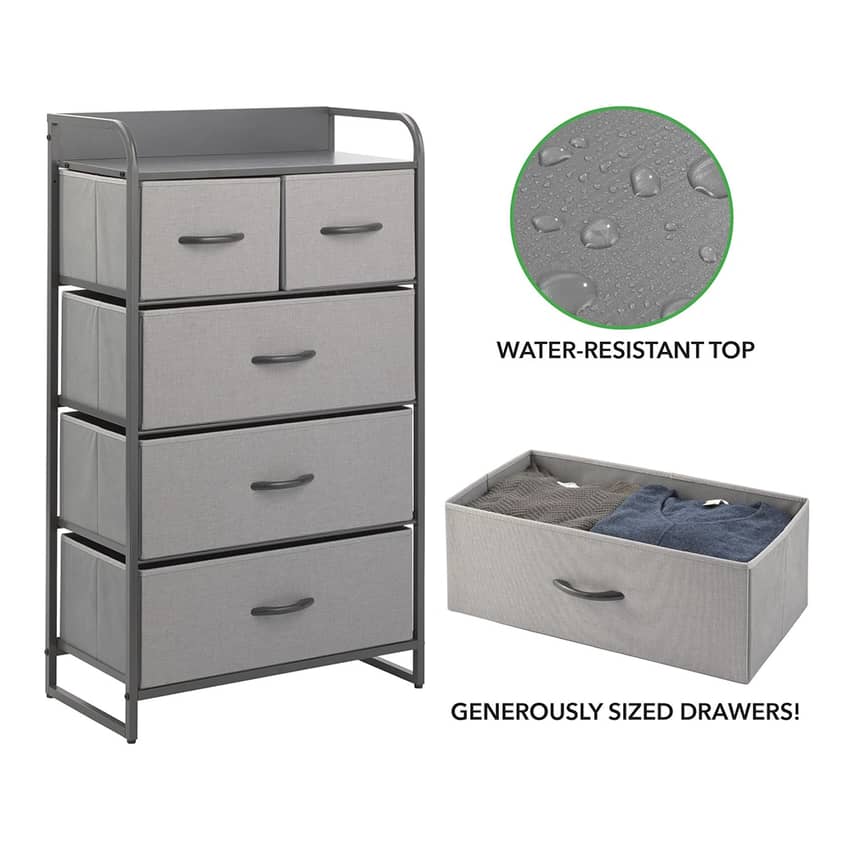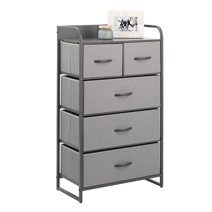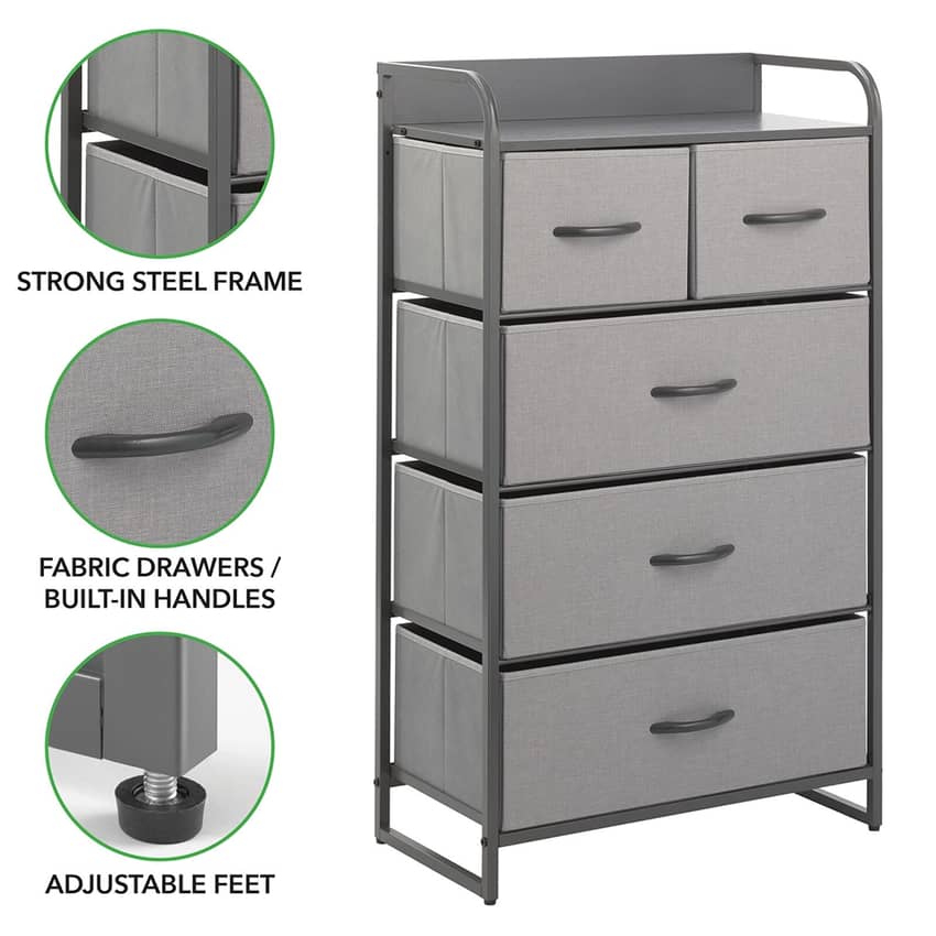 mDesign 5 Drawer Tall Dresser, Gray