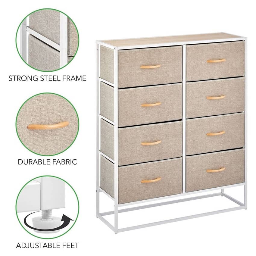 - mDesign Modern 8-Drawer Storage Tower, Linen