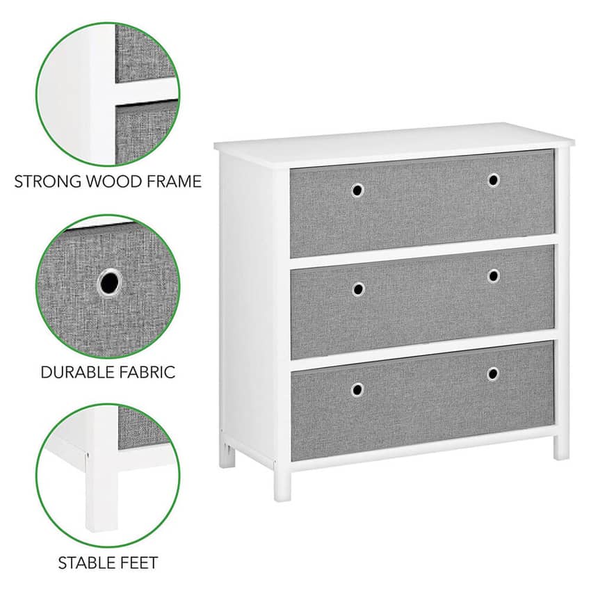 - mDesign Modern Wide Dresser with 3 Fabric Storage Bins, White/Gray