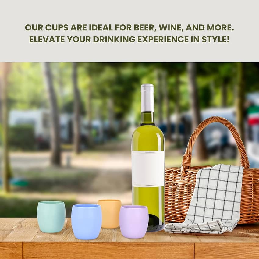 - Stay Cool Anywhere: experience the convenience of our silicone wine cups, perfect for enjoying your favorite beverages. These silicone cup drinkware are rust-free, dishwasher-safe, and keep your drinks chilled