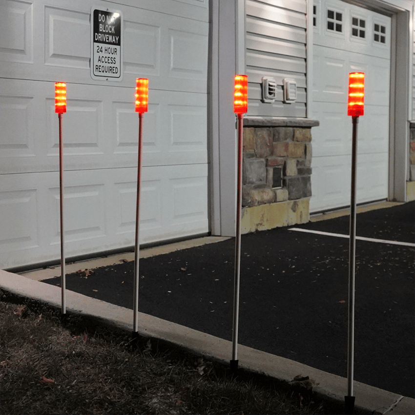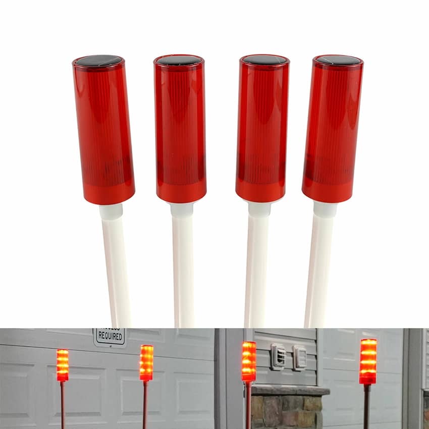 Enhance the safety and visibility of your driveway with the 41-inch Adjustable Solar Driveway Markers. This set of four markers features a new and updated design, offering bright and reliable illumination for 8-10 hours on a full charge. Completely solar-powered, they require no batteries, charging during the day and automatically lighting up at night with four built-in LEDs. The markers are constructed with a durable PVC stick and metal stake, and their height can be adjusted from 21 to 42 inches to suit your needs. With a 100% waterproof design, these markers are built to be long-lasting and dependable in any weather.