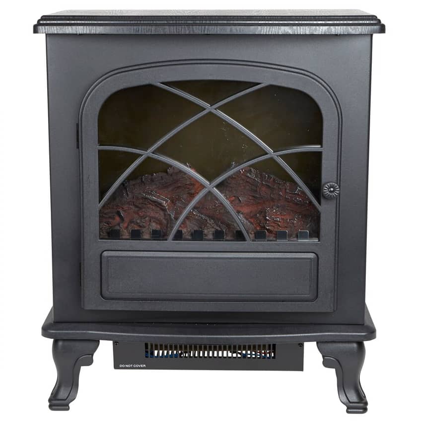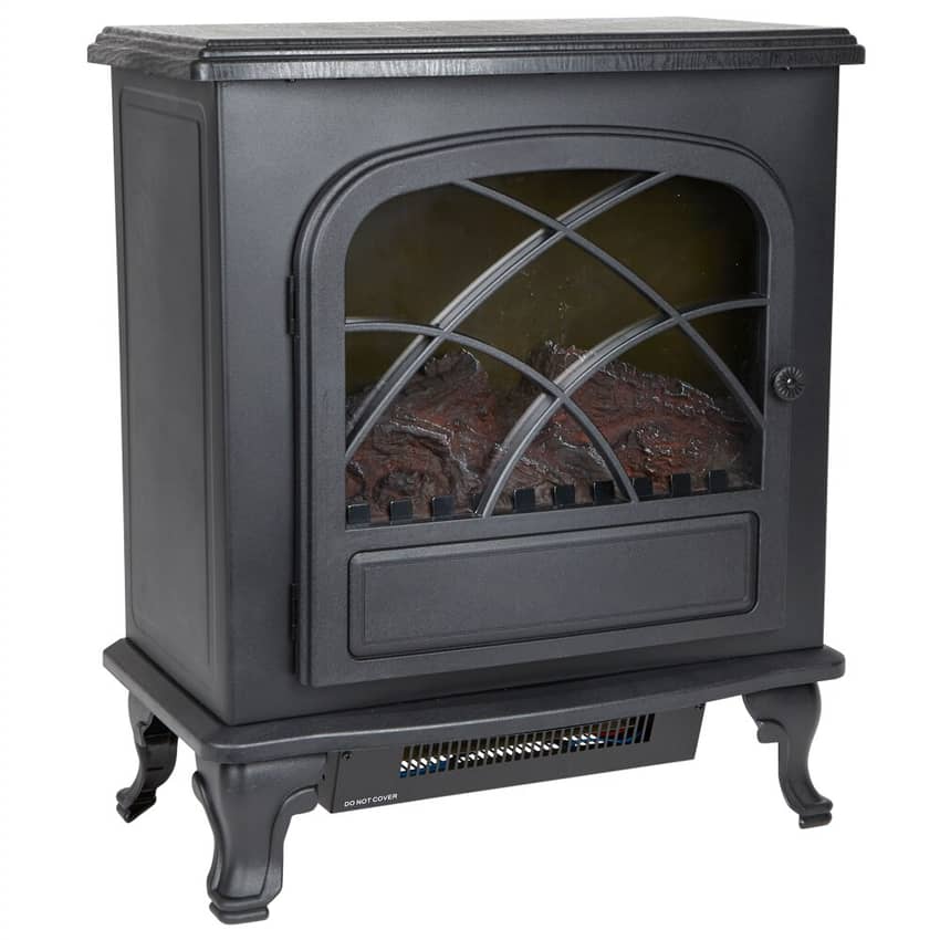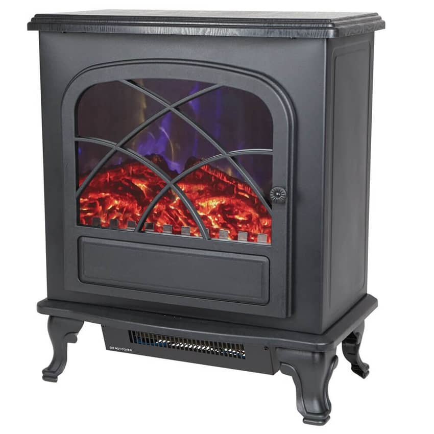 The Lifesmart infrared quartz electric fireplace looks just like a real wood stove without the mess! Realistic flame effect adds a cozy ambiance while two quartz infrared heating elements quickly take the chill out of any large room. Two heat settings let you control how much heat the fireplace gives off. This electric fireplace weighs just under 17 pounds so you can easily move it to any room you want to warm! Turn the unit on and off with included remote control. Safety features include a cool-touch exterior cabinet and an automatic overheat safety shut-off.
