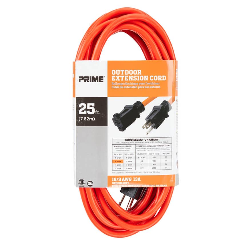 Prime 16/3 Medium-Duty Outdoor Extension Cord, 25’