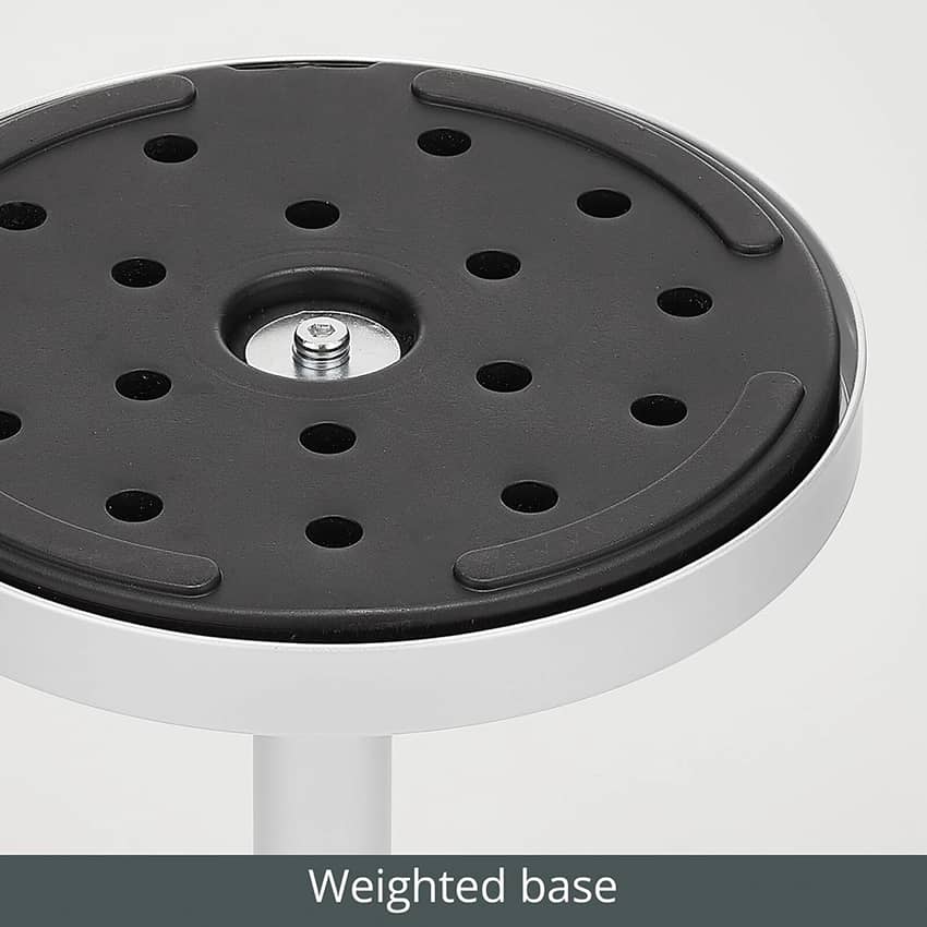 - Strong metal weighted base with a glass top