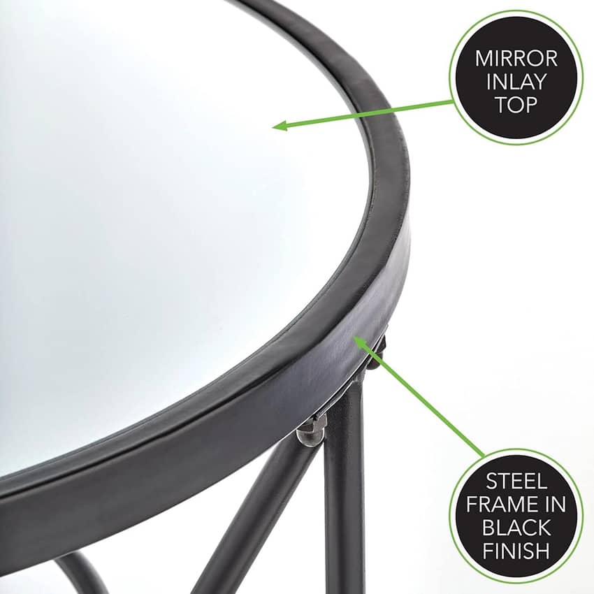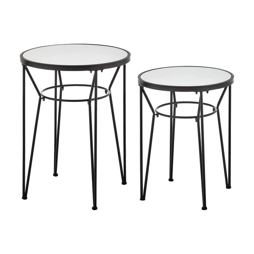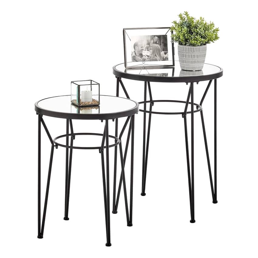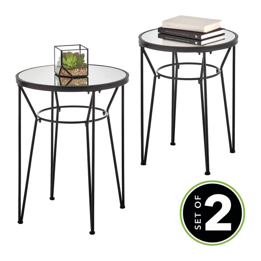 This set of two mDesign round metal accent tables are stylish and functional pieces of furniture that can be used in a variety of settings. These tables are made of strong steel with a durable finish and an easy-to-clean glass tabletop. These tables are the perfect size for use as a side table, end table, or coffee table. They provide ample space for displaying books, magazines, lamps, and other decorative accessories. The small table measures 15 inches in diameter and 19 inches high, and the large table measures 17 inches in diameter and 22.5 inches high.