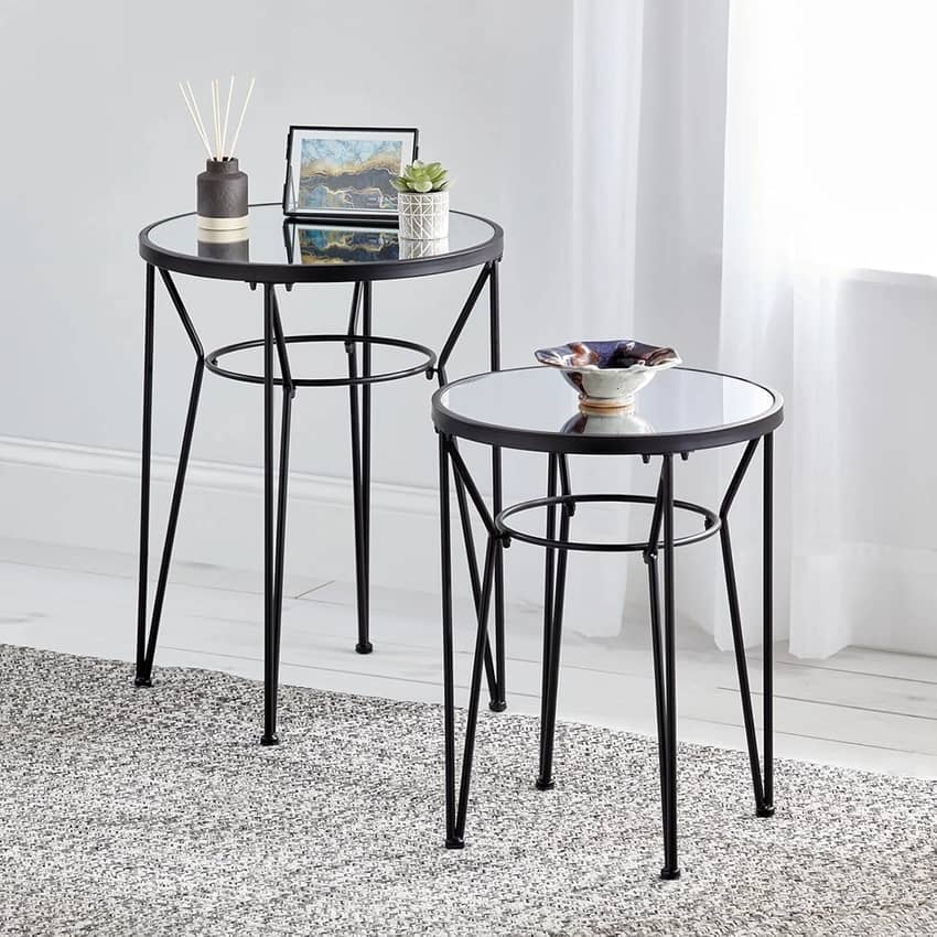 mDesign Round Metal Accent Table with Hairpin Legs, Set of 2, Matte Black