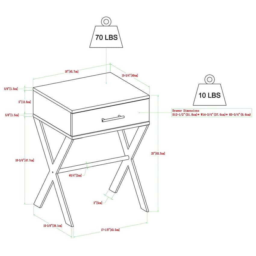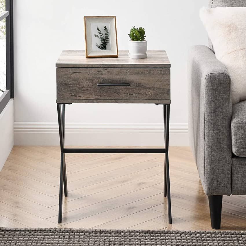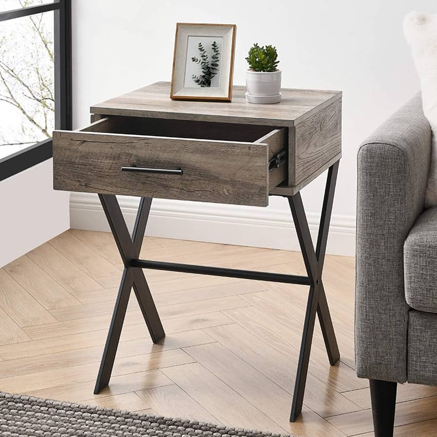 Never reach too far for the remote, your favorite book, or a glass of water with your trusty new metal and wood side table. This X-frame side silhouette accent table is the perfect addition to your home. Use this in your living room, bedroom, home office, or dorm. Tuck away your favorite goodies in its single drawer or purchase two to frame your comfiest armchair. To really tie the whole room together, check out this side table's full living room collection set.