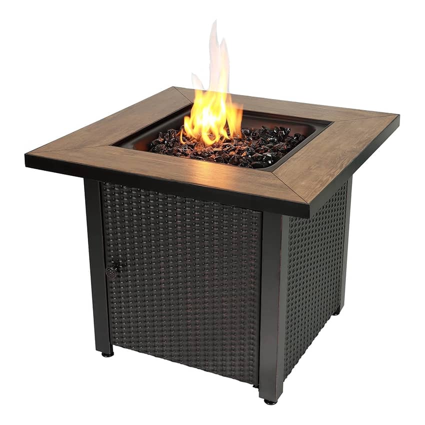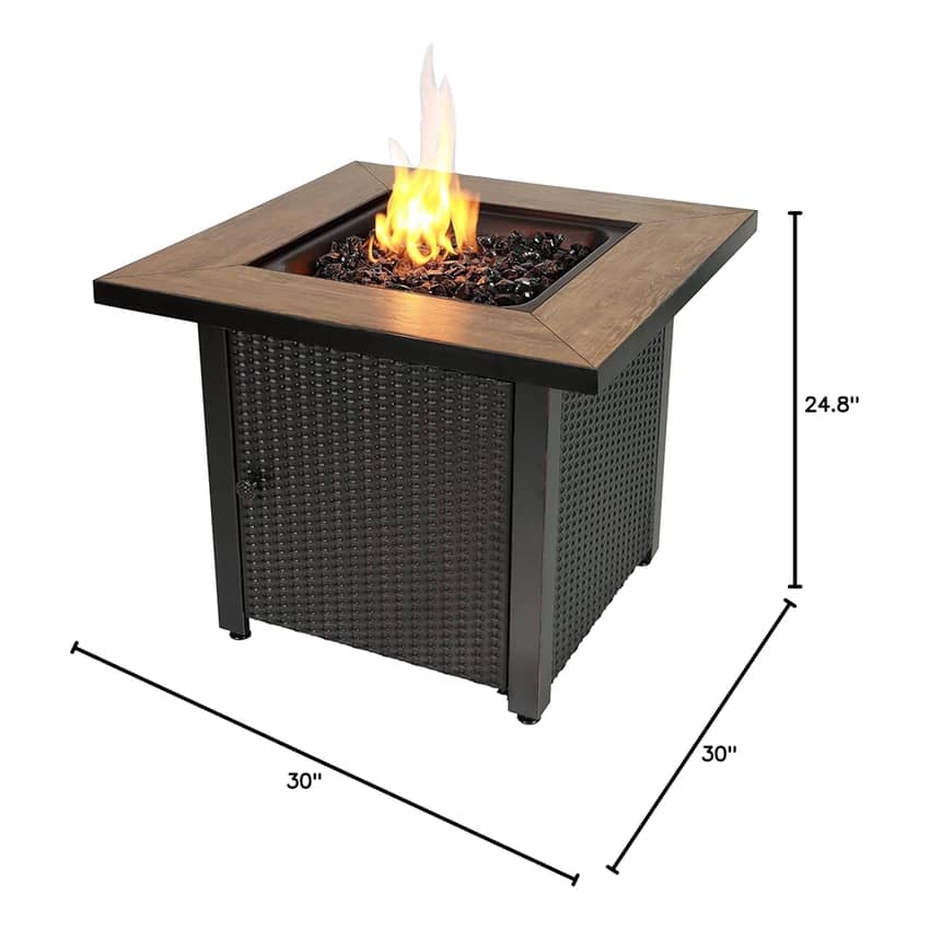 Enhance your outdoor living space with the Endless Summer 30-inch Outdoor Gas Fire Pit, delivering powerful and efficient warmth with its 50,000 BTU output, ideal for entertaining and relaxing evenings. Its elegant and durable design features a stamped steel base finished in a weather-resistant, oil-rubbed bronze, ensuring lasting beauty. This fire pit includes hidden storage to conceal a propane tank. Offering versatile 2-in-1 functionality, it comes with a steel table insert, allowing you to easily convert it into a stylish 30 by 30-inch table when the fire is not in use. This complete set includes black fire glass for an attractive flame display, a protective cover to safeguard your investment, and a convenient push-to-ignite system for effortless operation. This fire pit weighs 89 pounds and measures 30 inches long, 30 inches wide, and 24.8 inches high.