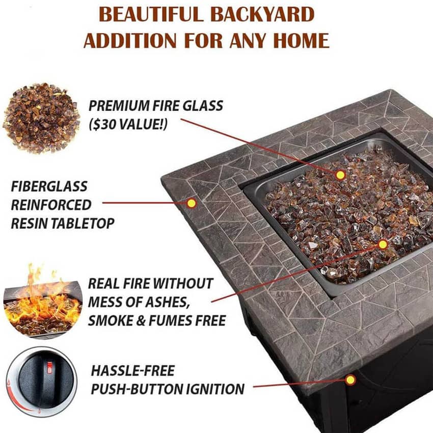 - Includes blue fire glass and protective cover, making sure your backyard fire pit is safe from the elements
