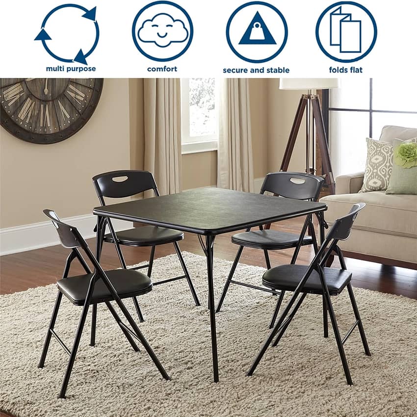 Cosco 5-Piece Folding Table and Chair Set, Black