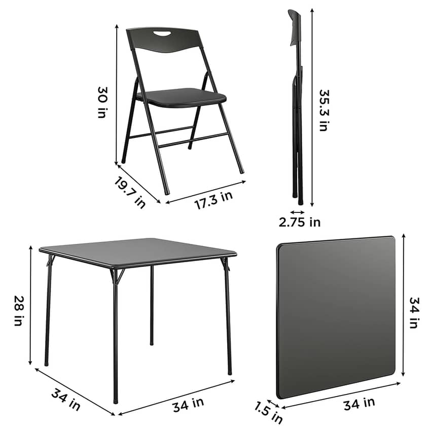 - Table: 34"L x 34"W x 28"H