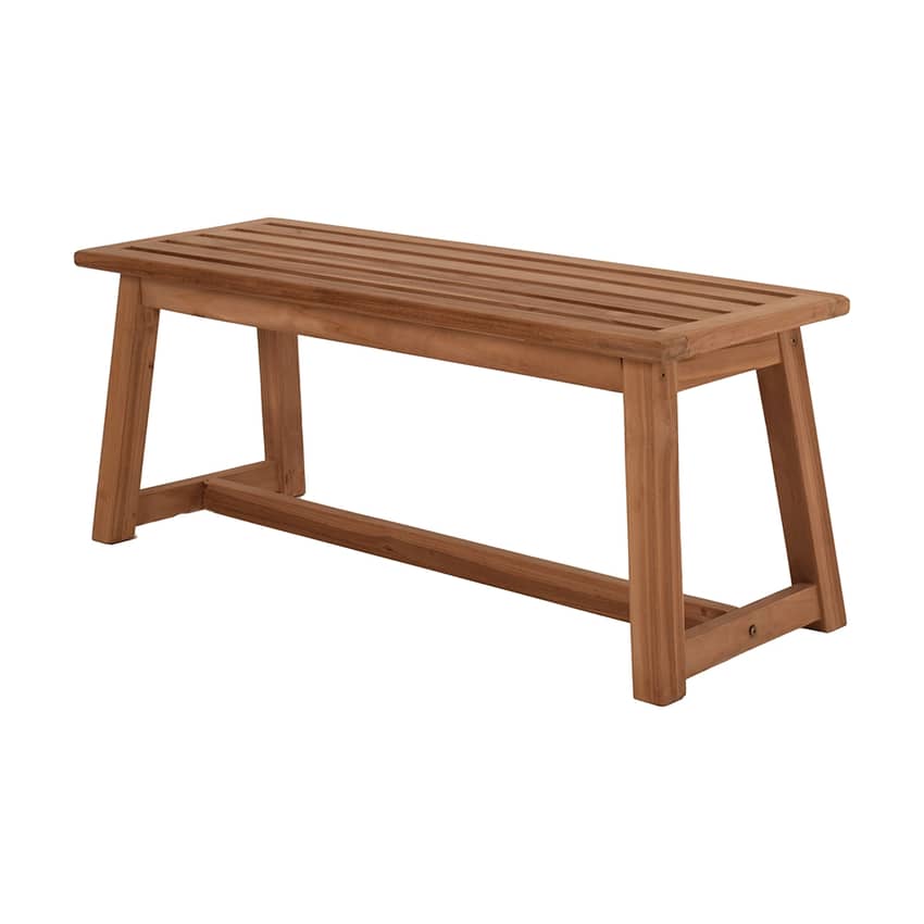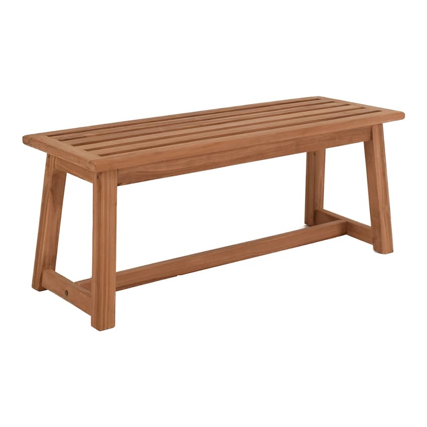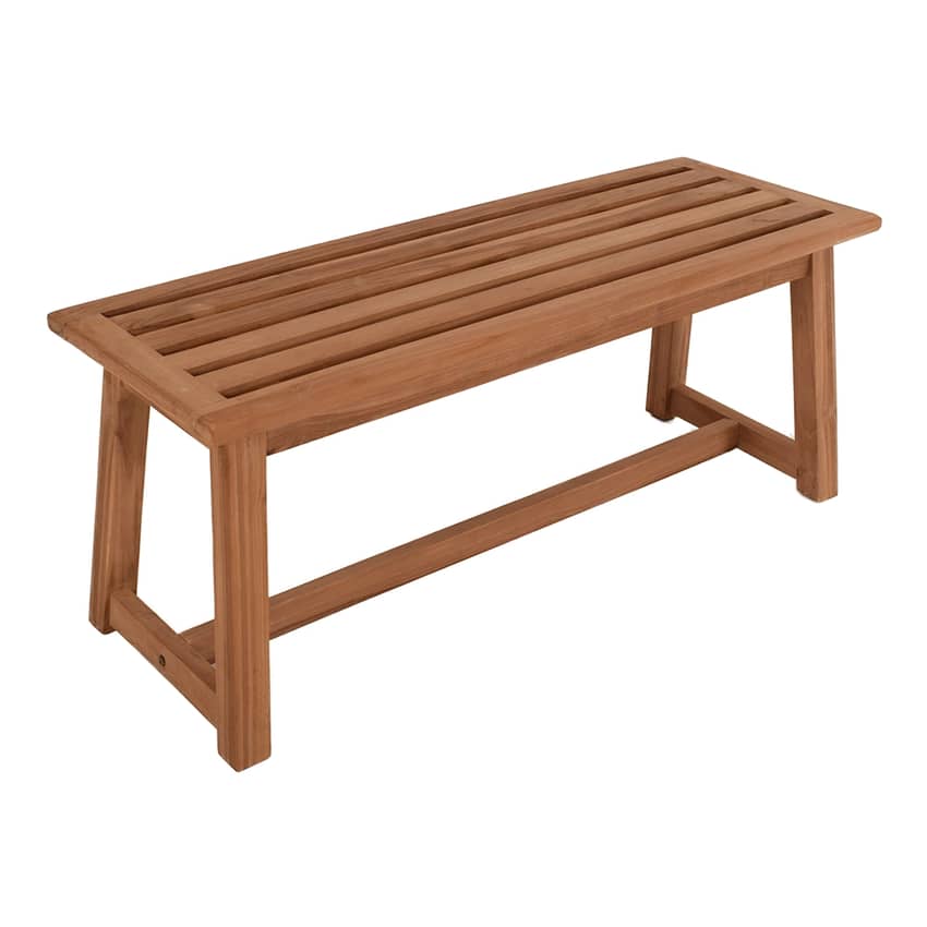 Embrace timeless elegance and enduring comfort with the Backless Teak Bench. Crafted from solid teak, this bench offers a classic design that seamlessly integrates into any outdoor space, promising years of enjoyment. Rust-resistant brass fittings ensure lasting durability, while the vented slat surface promotes proper drainage, keeping the bench dry and comfortable. With its sturdy construction and natural beauty, this teak bench provides a perfect seating solution for gardens, patios, or porches. This bench measures 43.3 inches long, 15.75 inches wide, and 17.71 inches high.