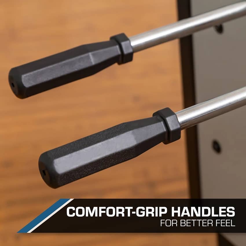 - Solid steel player rods with weighted and balanced players for greater ball and player control