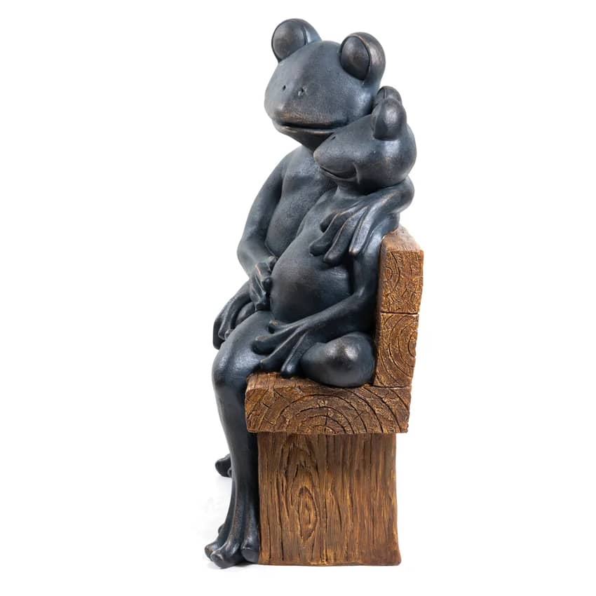 Bring a touch of playful tranquility to your garden with this charming 29-inch Hugging Frogs statue. This delightful piece blends classic artistry with modern design, creating a whimsical focal point for your outdoor space. The two frogs embraced in a hug offer a heartwarming scene, sure to bring a smile to your face day and night, making it a delightful addition to your yard. This statue weighs 25.8 pounds and measures 17.9 inches long, 10 inches wide, and 25.9 inches high.