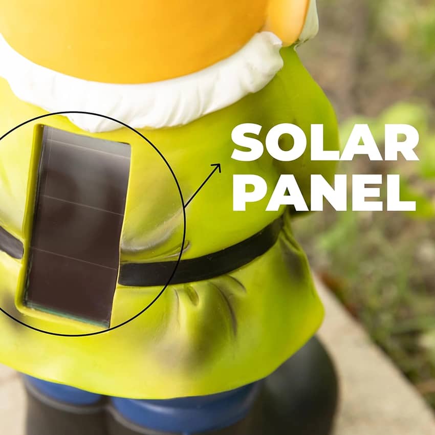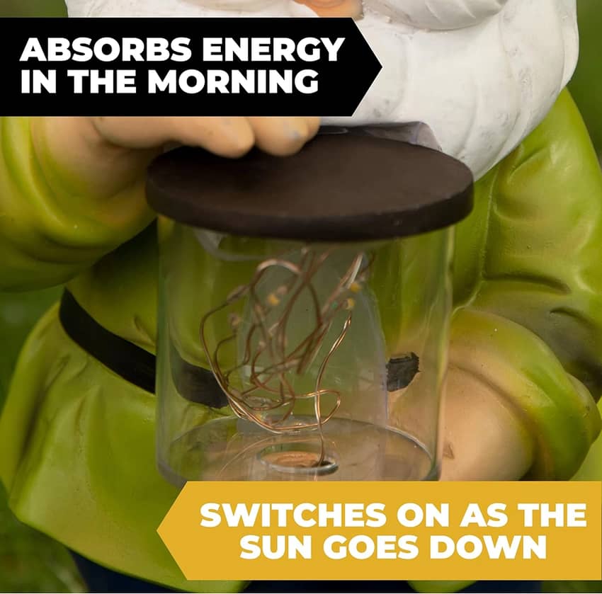 - This garden gnomes is perfect for any place with direct sunlight. Charging in the daytime and automatically lights up at night. The solar-powered gnome light will shine for hours when fully charged