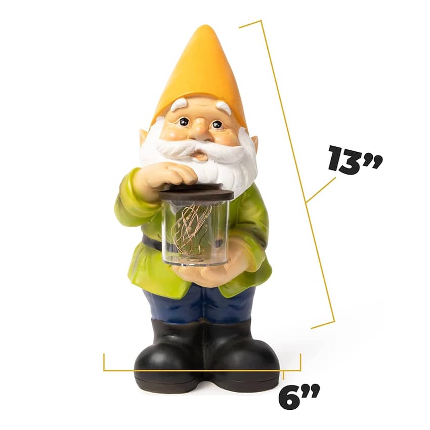 - If you are a gardening and decoration lover, This lawn gnome is a great addition to your garden! After setting up this gnome outdoor, enjoy vibrant colors by day and comfortable light at night