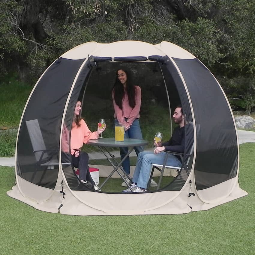 Escape the sun and bugs with the Octagonal Screen Hut! This 10-foot long, 10-foot wide shelter features a spacious interior with SPF 50+ UV protection and cool, breathable mesh walls that offer 360-degree ventilation so you can see what's going on around you. Perfect for the beach, pool, picnics, or camping, it sets up in seconds with no tools or assembly required - simply unfold and enjoy! The lightweight yet strong fiberglass frame ensures durability, while two zippered panels allow for full enclosure while making it easy to enter and leave. Offering comfortable space for four to six adults, this screen hut is the perfect addition to your outdoor adventures.