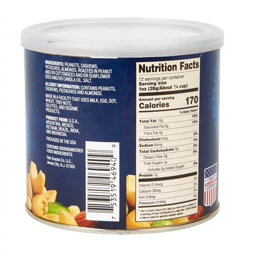 Craving a crunchy and flavorful snack? Imperial Nuts Salted Select Mixed Nuts with Pistachios are the perfect choice. This 12-ounce can is filled with a delicious assortment of roasted peanuts, cashews, almonds, and savory pistachios. Each nut is lightly salted for a satisfying crunch. Whether you're enjoying a movie night, sharing with friends, or need a quick energy boost, these mixed nuts are the ideal on-the-go treat.