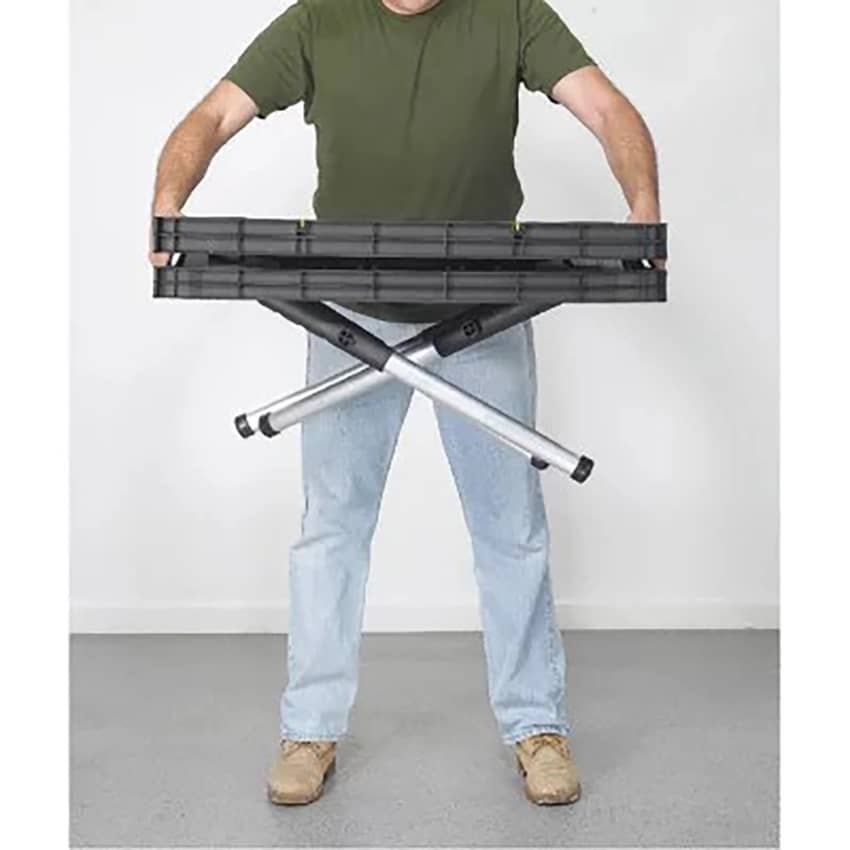 - Ready to work in just 30 seconds with no assembly required, this lightweight worktable is perfect for DIY projects, home improvements, and job sites