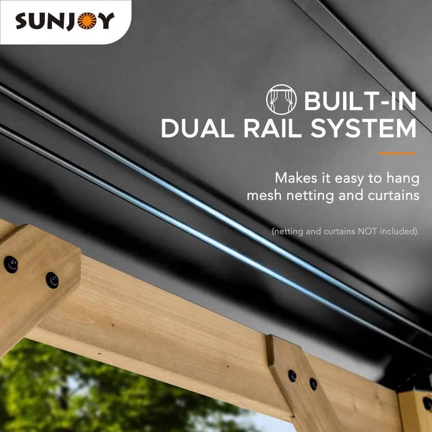 - Dual Rail System Built-In: The built-in dual rail system makes it easy to hang mesh netting and curtains (netting and curtains NOT included).