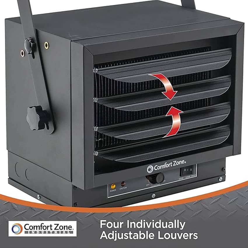 - Fan-forced design with adjustable louvers for precise, targeted heating.