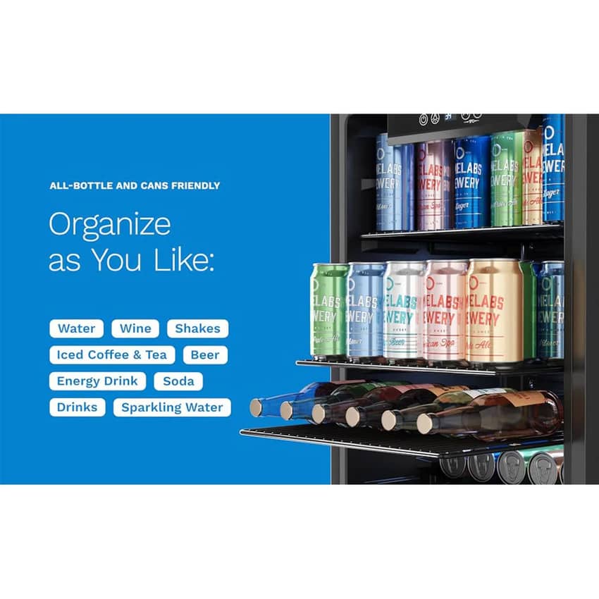 - Our beverage fridge is always ready for a party, with its large internal storage capacity and adjustable shelving.