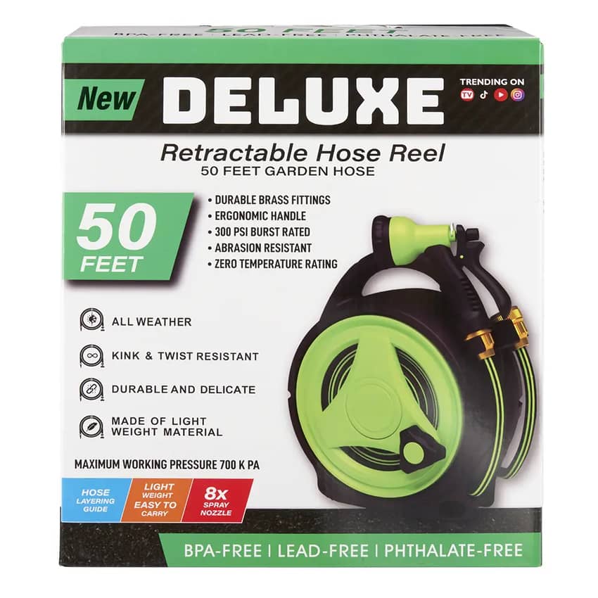 - Manual retractable reel keeps the hose tidy and tangle-free.